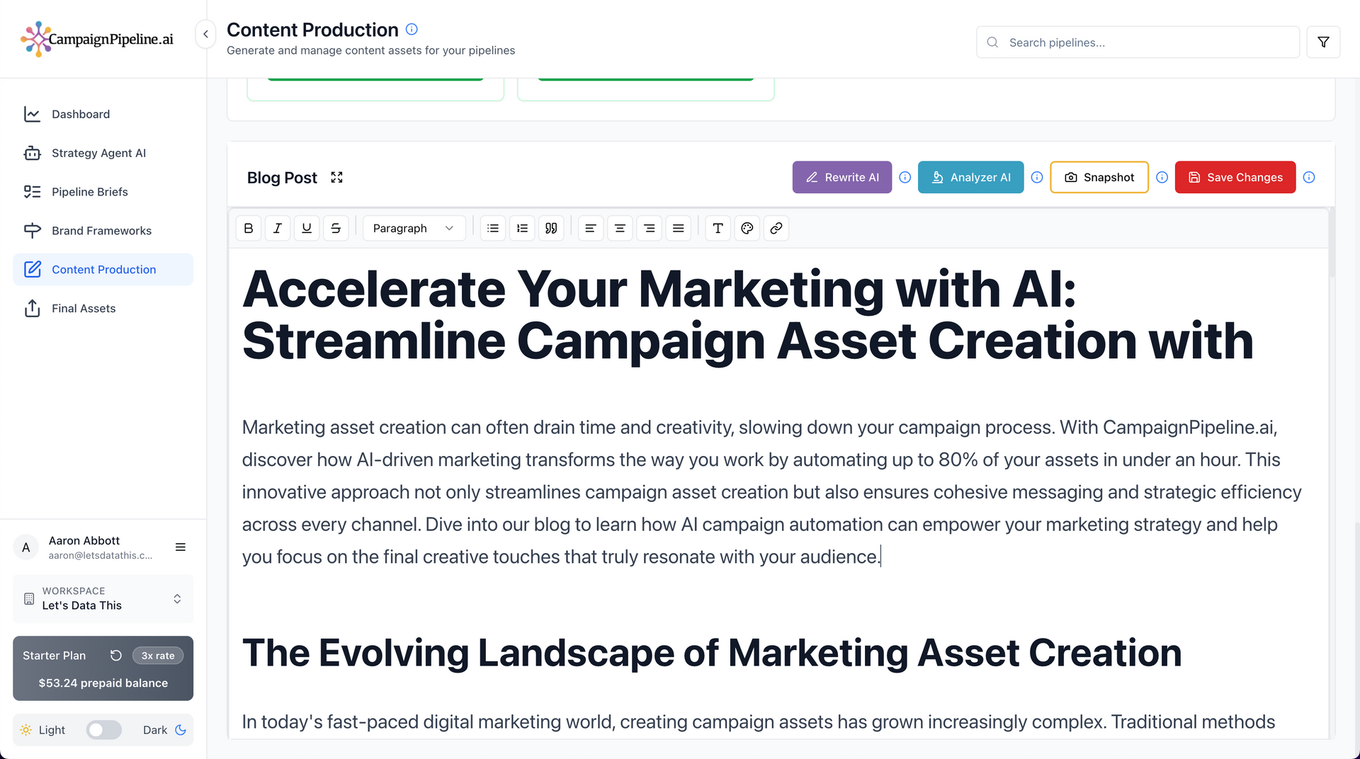Campaign Pipeline bridges the gap between creativity and automation. It thinks strategically, writes intelligently, and helps you publish confidently — giving your team more time to focus on ideas, not process. This isn’t another AI tool. It’s your