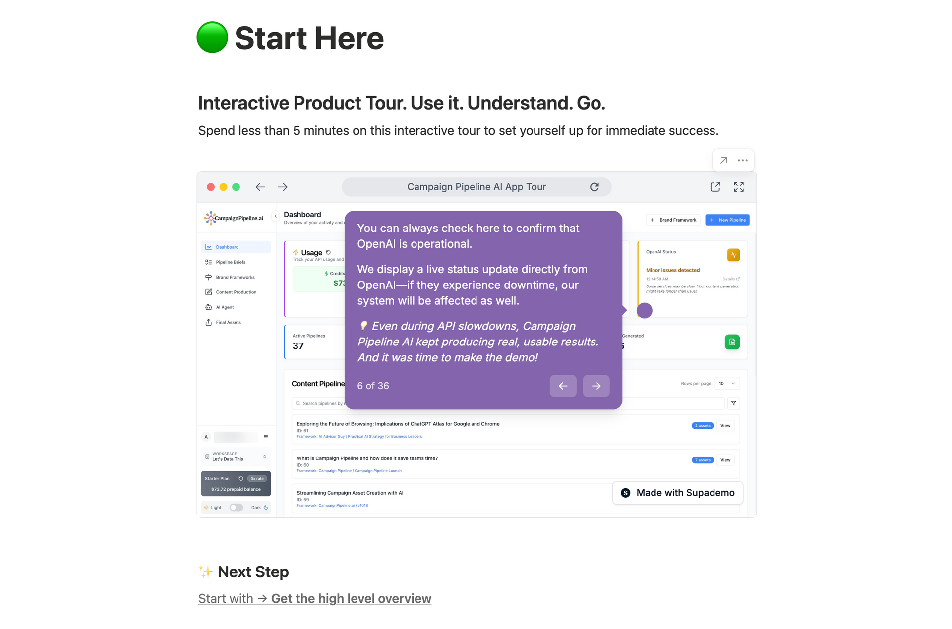 Interactive Tour of Campaign Pipeline.